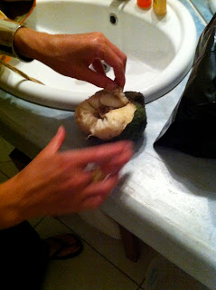 We checked into our room - a different room from ten days ago - and immediately wanted to bust out the breadfruit and give it a try! My trusty pocket knife came in handy to cut through the hard outer peel. We decided it tasted like sweet tarts. Worried about stinking up the hotel, we wrapped the remains in plastic and snuck it outside to toss it in a public garbage can.